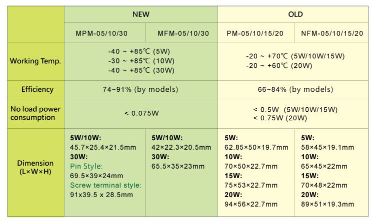 Nguồn Meanwell MPM/MFM-05/10/30 series 5W/10W/30W mật độ công suất cao và kích thước nhỏ